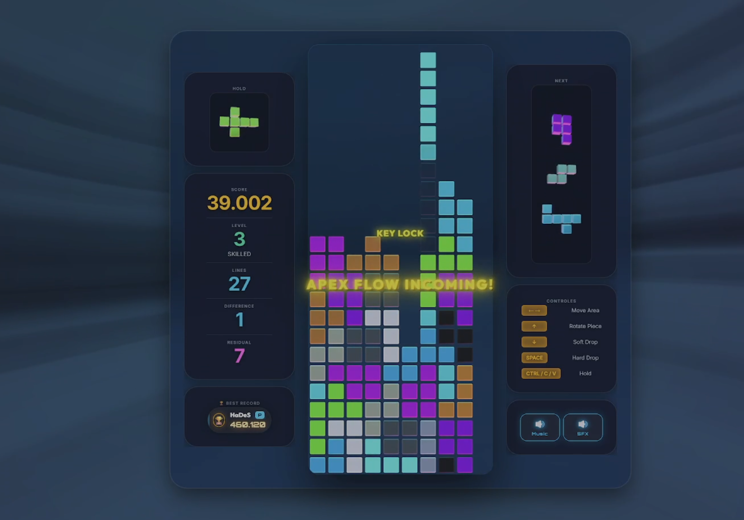 - Flip Gravity: Every 5 levels, the pieces start falling toward the ceiling. You have to clear 20 lines in this inverted mode just to get the world back to normal .